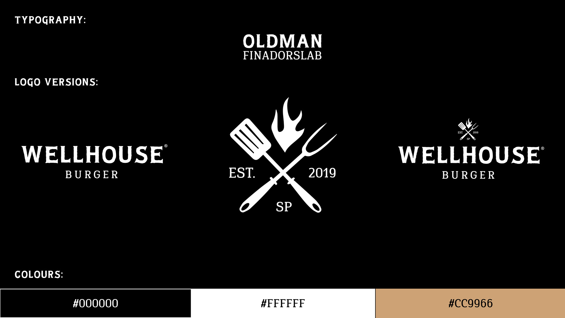 A ideia principal do logo foi de utilizar uma fonte que chamasse a atenção das pessoas e que transmitisse os valores da marca ao mesmo tempo, essa fonte rústica/moderna foi perfeita para isso. Junto a fonte foi usado um símbolo que traz elementos que traduzem seu significado, como a chama para transmitir a ideia da brasa, do fogo. E o garfo e a espátula que representam o manuseio da carne, do churrasco. A cor preta e branca para dar um toque Premium e moderno.